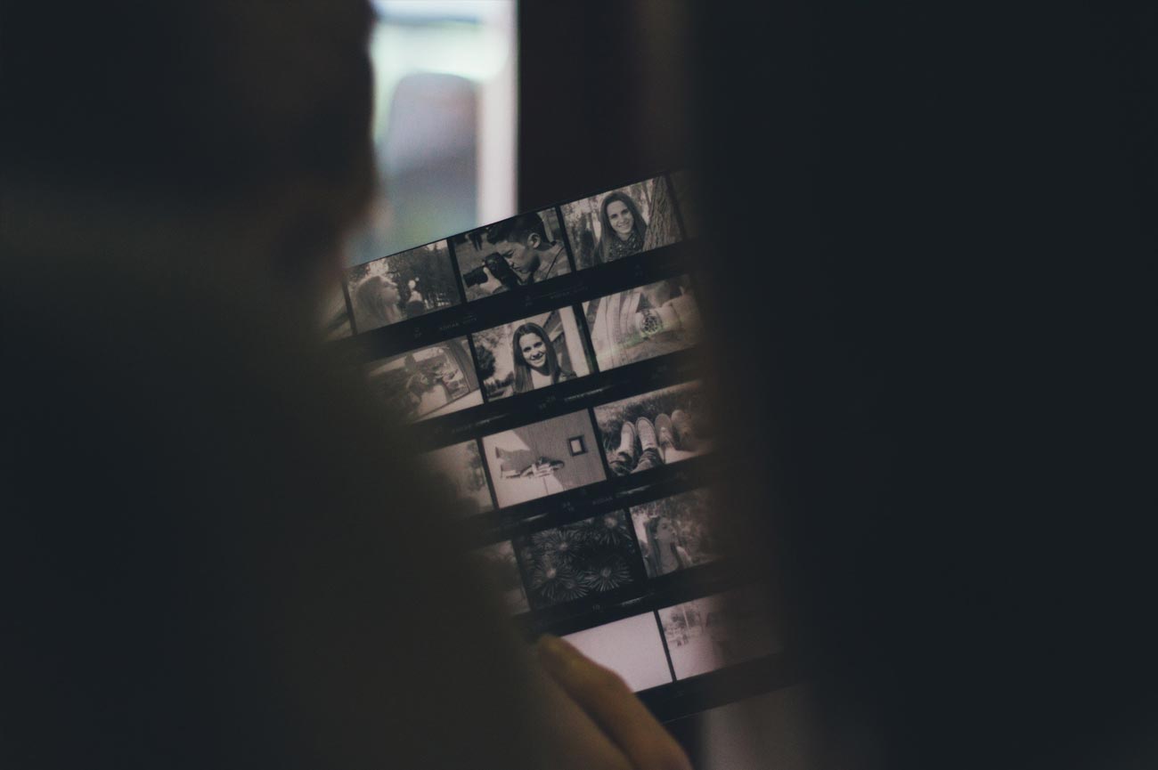 Once the film is developed and dry you’ll want to continue storing it in a safe, dust-free environment. Acid-free/archival plastic negative holders should be purchased to keep your film in a closed binder or acid-free box. These plastic sleeves generally fit 5 or 6 negatives, so you will need to cut your film down, and help keep out dust. Never cut your film into smaller strips than necessary and never cut the negatives into single frames. When you begin printing black and white photography in the darkroom your negative will need some length to be held in the enlarger. It is also unnecessary to trim down your negatives more than you need to.