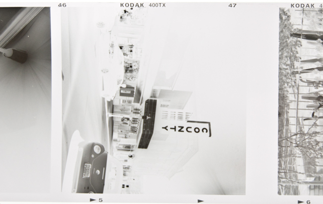 Medium format film is larger than 35mm and is typically seen in 120 or 220 types. Both types are similar except that 120 has 12 exposures while 220 has 24. Medium format film is sized ranging from 6 x 4.5cm to 6 x 6cm (the two most common sizes) up to 6 x 9cm and 6 x 17 cm. Because of the size of this film, it is able to be printed much larger in size without noticeable grain. Unlike 35mm film, the edges are not perforated. Instead, this film uses a leader to wind film from one reel to the next. Here is an example of a medium format negative.