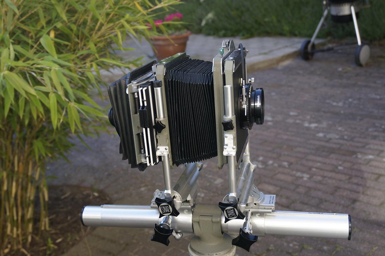 Using a viewfinder camera is a much longer and time consuming activity than the smaller formats and requires much attention to detail. Film must be pre-loaded into special film holders in the complete dark before using the camera and must only be removed in the complete dark until processed. Because of the bulky size and heavy weight, a tripod should always be used. When viewing the scene through the ground glass of the back of the camera, the image will be upside down and backwards. Until you get used to working this way, composing your image will take some time. Below are some simplified steps to setting and using your viewfinder camera: